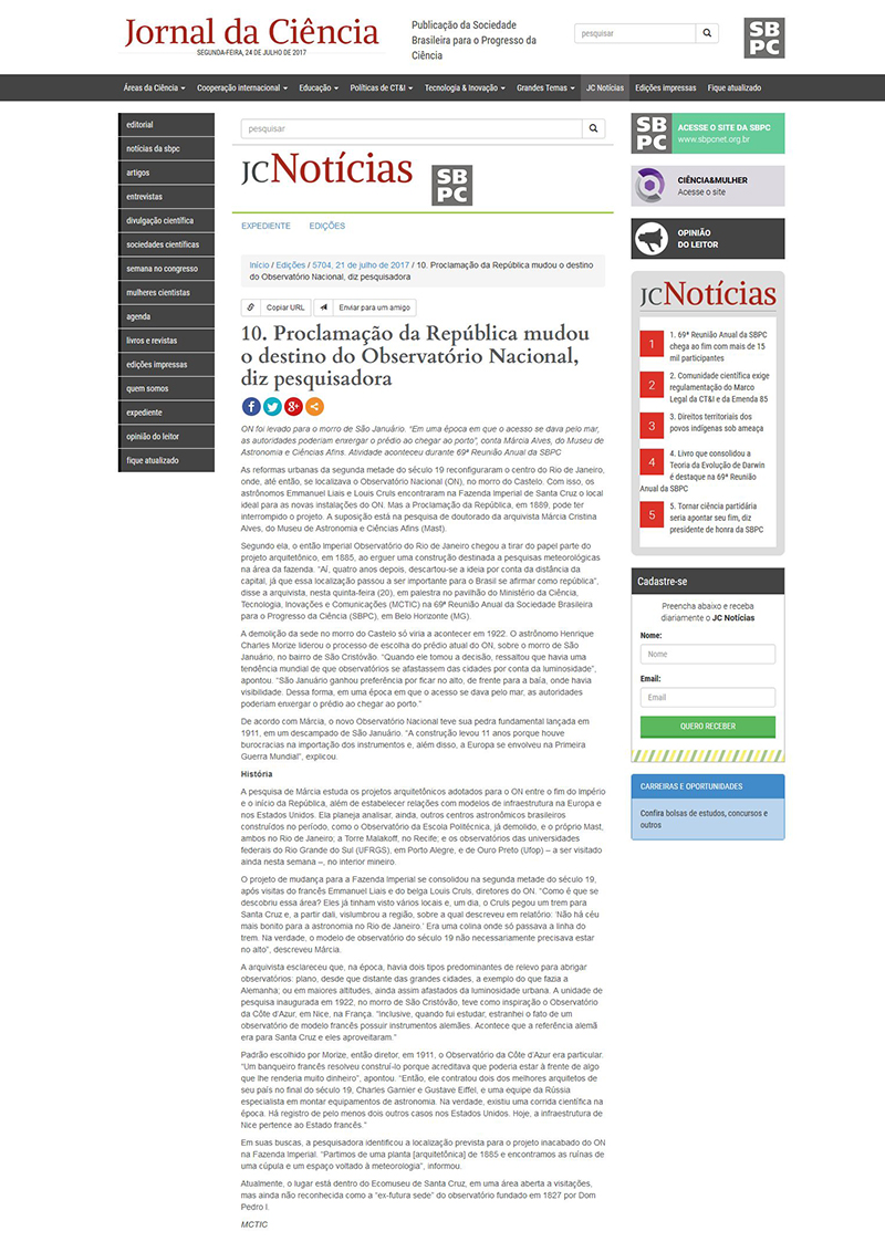 Jornal da Ciência | Proclamação da República mudou o destino do Observatório Nacional, diz pesquisadora