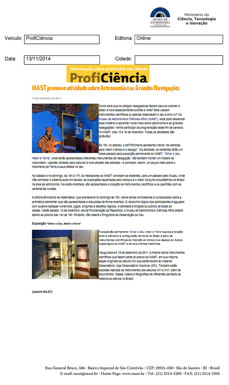 ProfiCiência | MAST promove atividade sobre astronomia e as grandes navegações