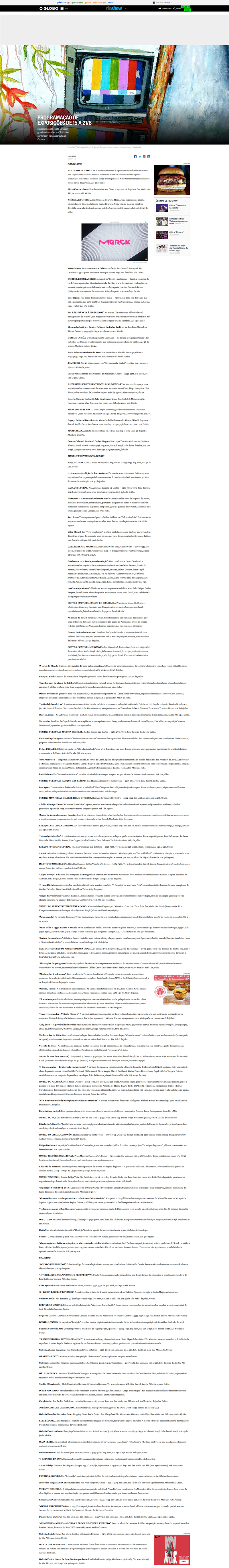 O Globo - Rio Show | Programação de exposições de 15 a 21/6