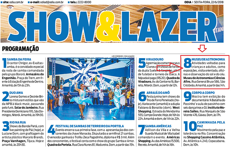 O Dia - Show e Lazer | Programação Museu de Astronomia