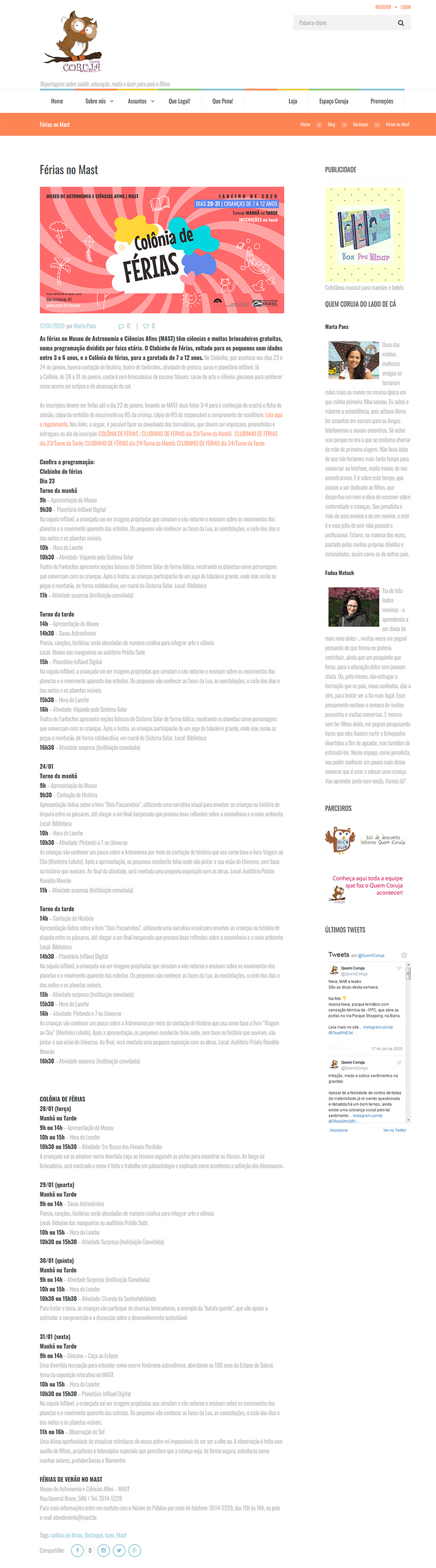 Quem Coruja | Férias de Verão no MAST