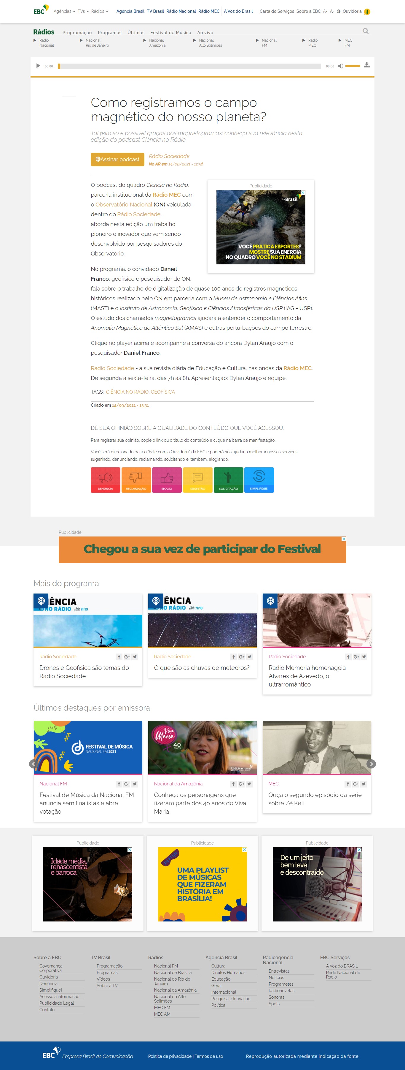Rádios EBC - MAST na reportagem 'Como registramos o campo magnético do nosso planeta?'