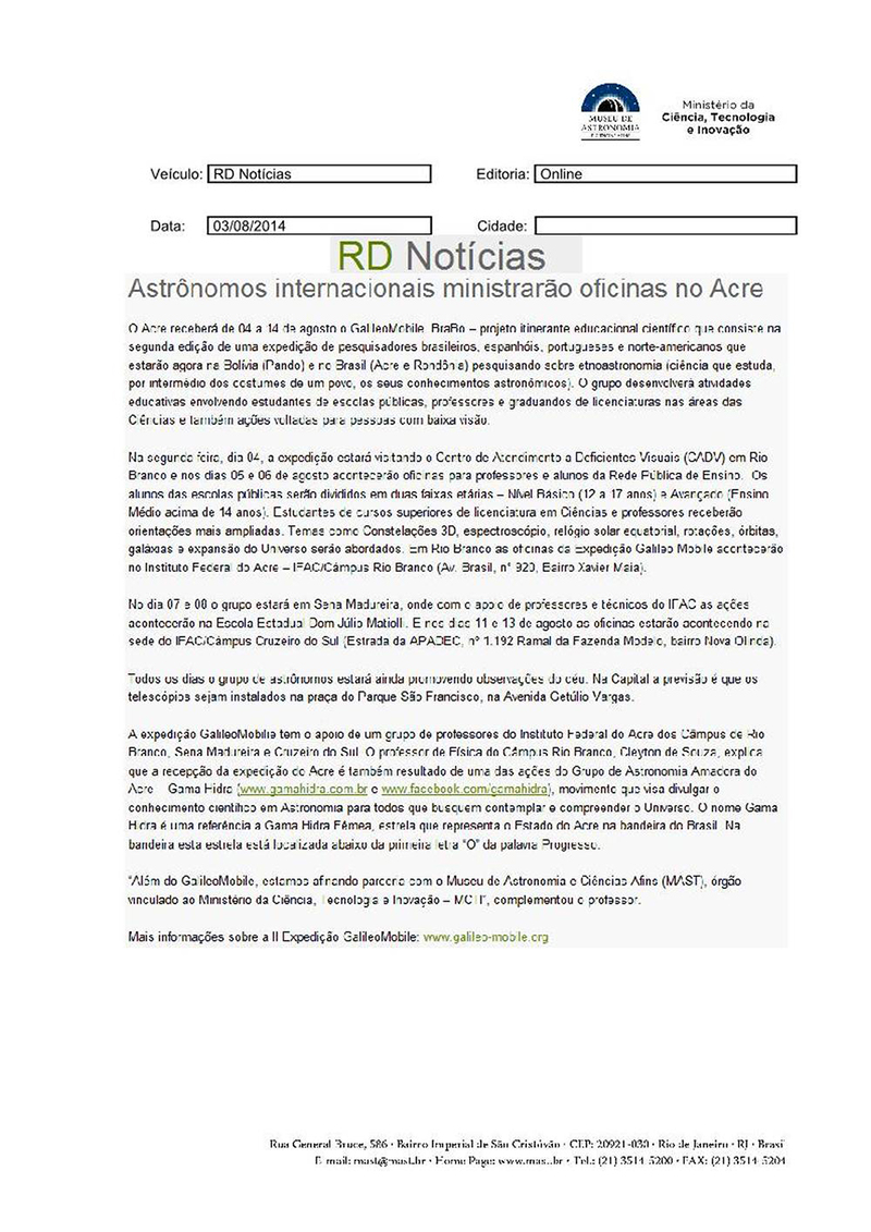 RD Notícias | Astrônomos internacionais ministrarão oficinas no Acre