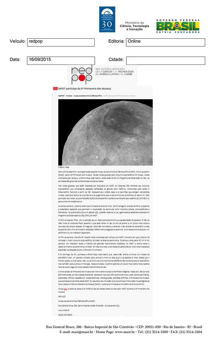 RedPOP | MAST participa da 9ª Primavera dos Museus