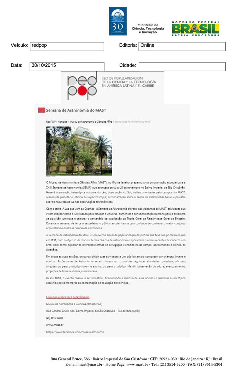 RedPOP | Semana de Astronomia do MAST