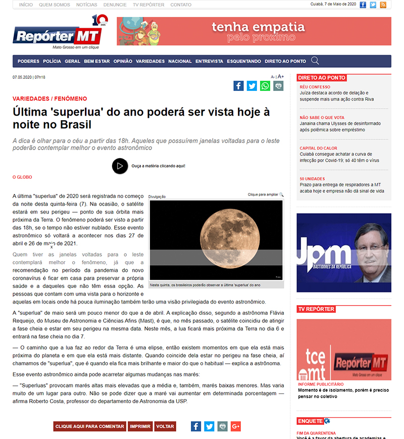 Repórter MT (Cuiabá - MT) | MAST na reportagem sobre a última Superlua de 2020
