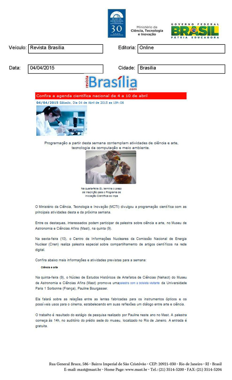 Revista Brasília | Confira a agenda cientifica de 04 a 10 de abril