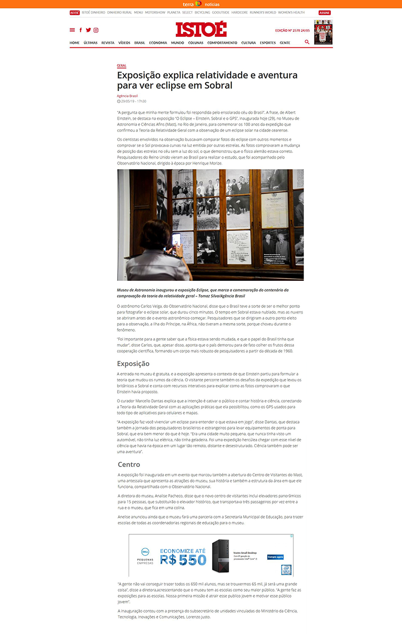 Revista Isto É Online | Exposição explica relatividade e aventura para ver eclipse em Sobral