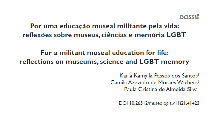 Revista 'Museologia & Interdisciplinaridade' / UnB - MAST no artigo "Por uma educação museal militante pela vida: reflexões sobre museus, ciências e memória LGBT"