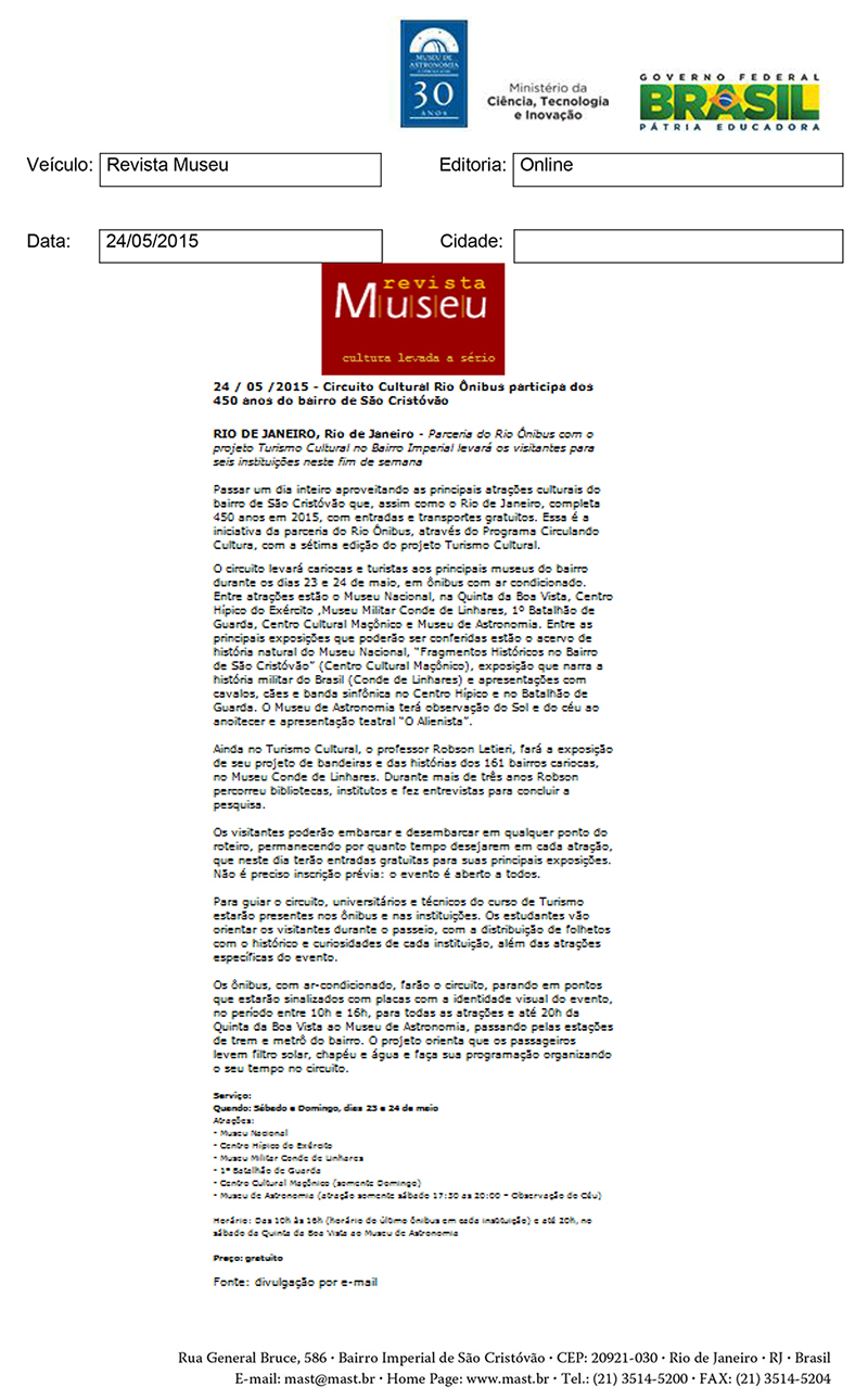 Revista Museu | Circuito Cultural Rio Ônibus participa dos 450 anos do bairro de São Cristóvão