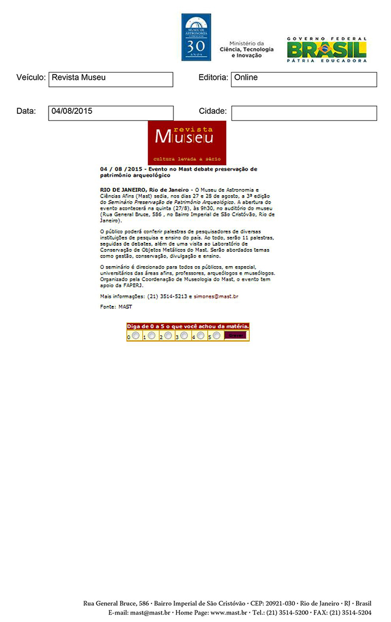 Revista Museu | Evento no MAST debate preservação de patrimônio arqueológico