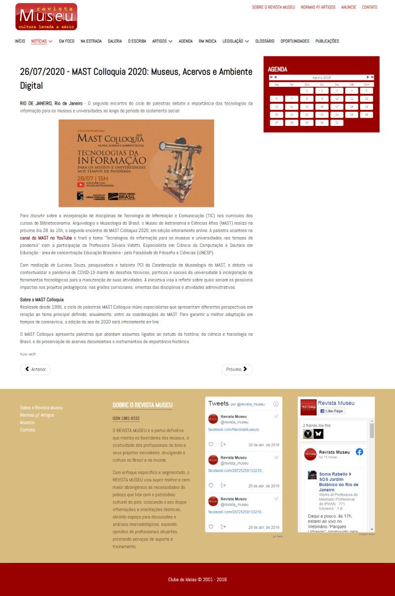 Revista Museu | MAST Colloquia 2020: Museus, Acervos e Ambiente Digital