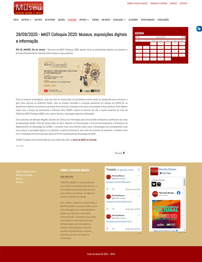 Revista Museu | MAST Colloquia 2020: Museus, exposições digitais e informação