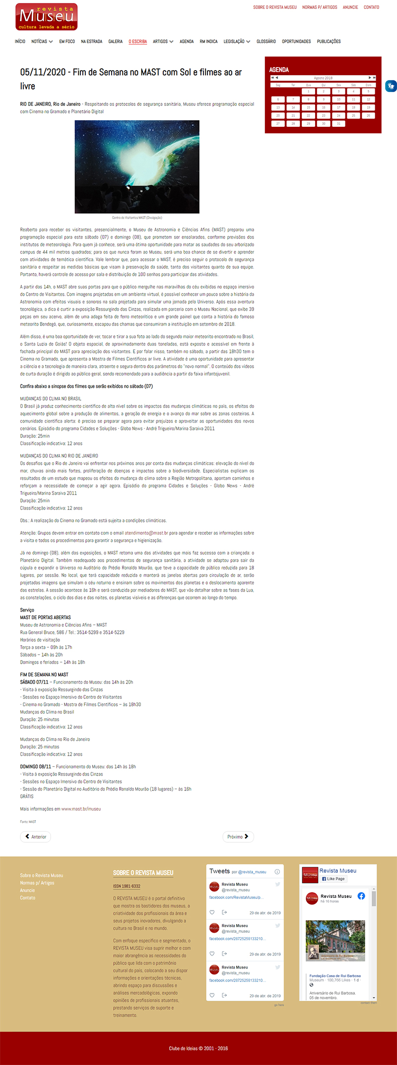 Revista Museu - MAST de Portas Abertas | Fim de Semana com Sol e vídeos ao ar livre