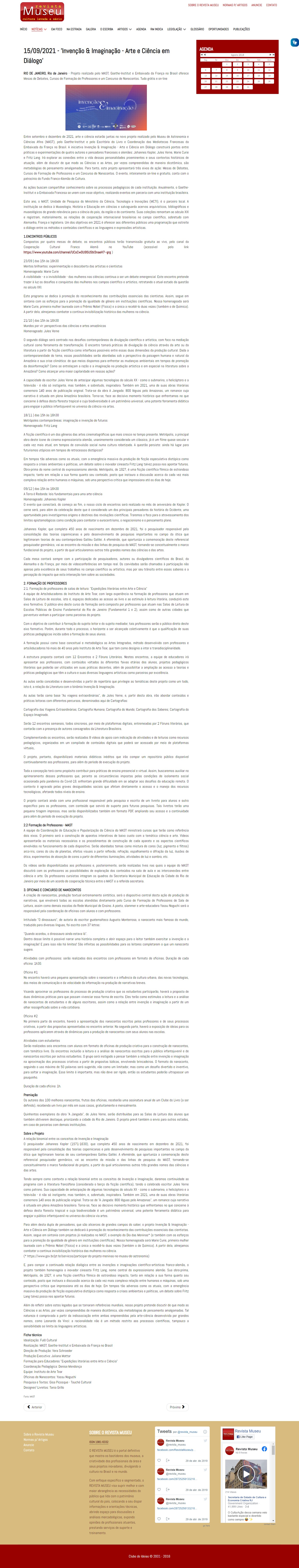Revista Museu - MAST, Goethe-Institut e Embaixada da França realizam o projeto 'Invenção & Imaginação - Arte e Ciência em Diálogo'