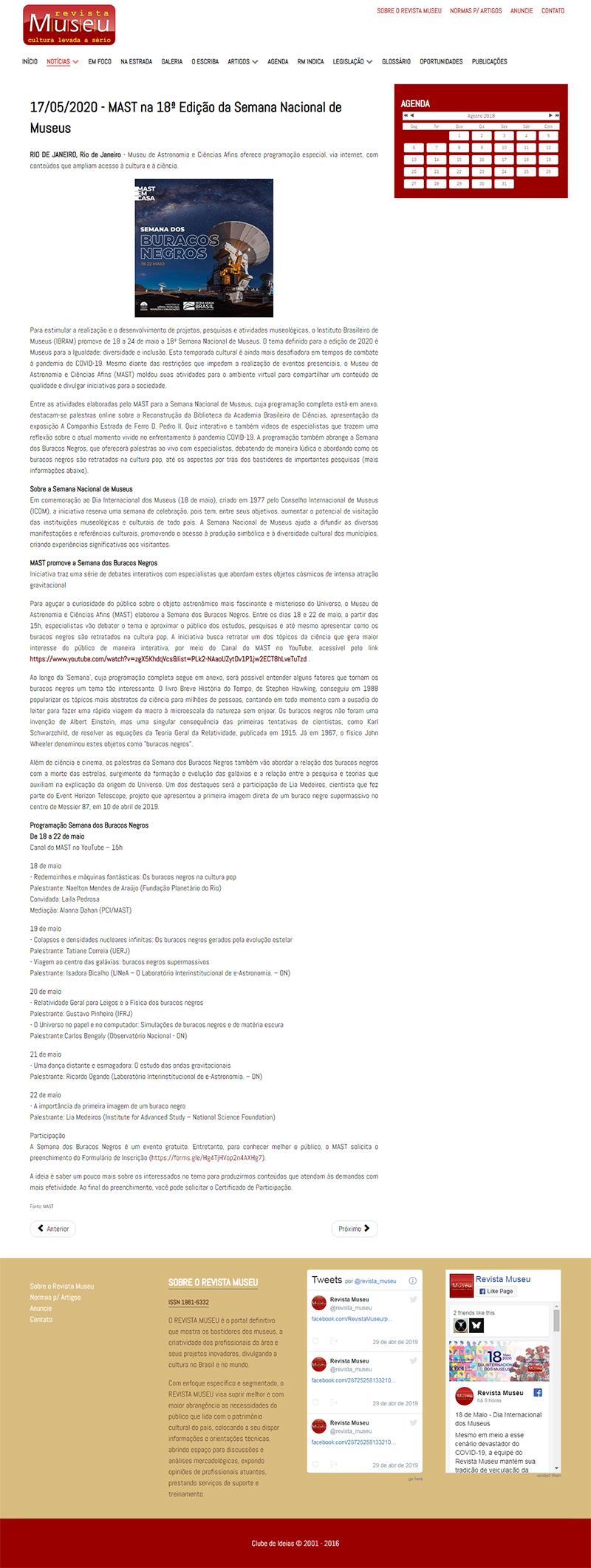 Revista Museu | MAST na 18ª Semana Nacional de Museus