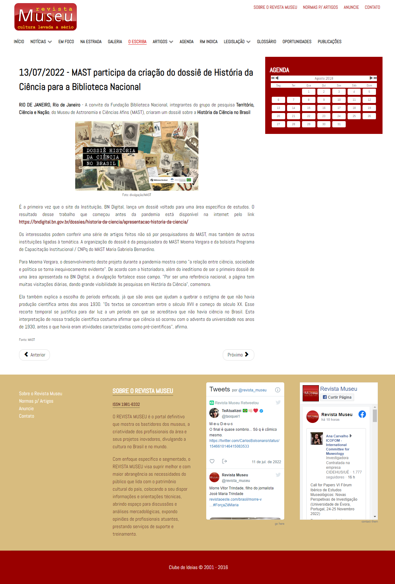 Revista Museu - MAST participa da criação do dossiê de História da Ciência para a Biblioteca Nacional