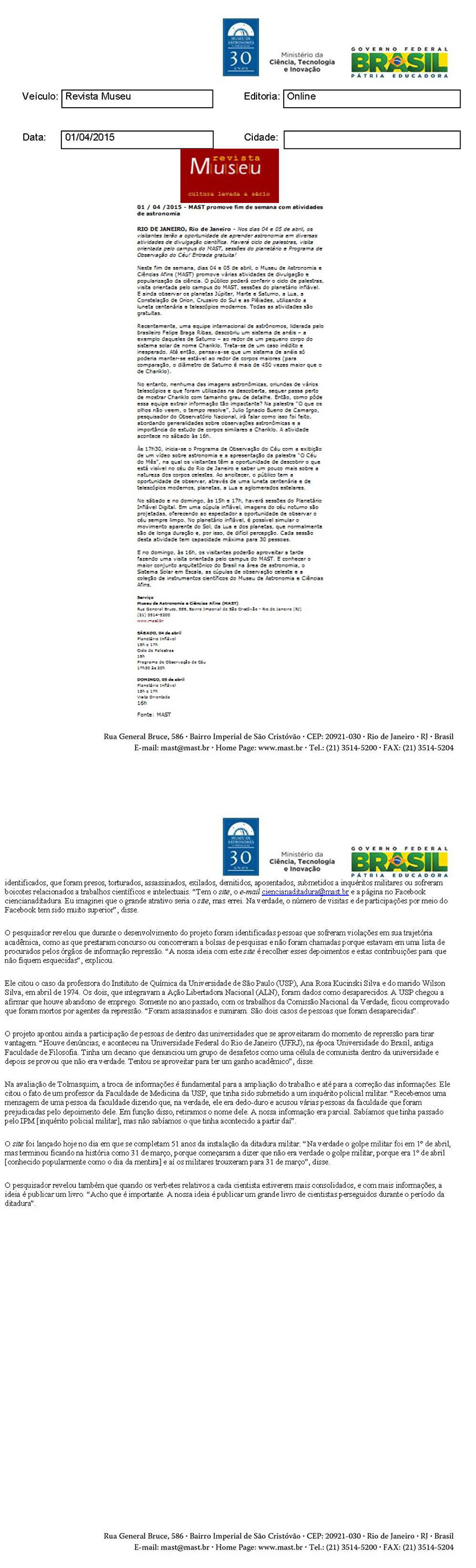 Revista Museu | MAST promove fim de semana com atividades de astronomia