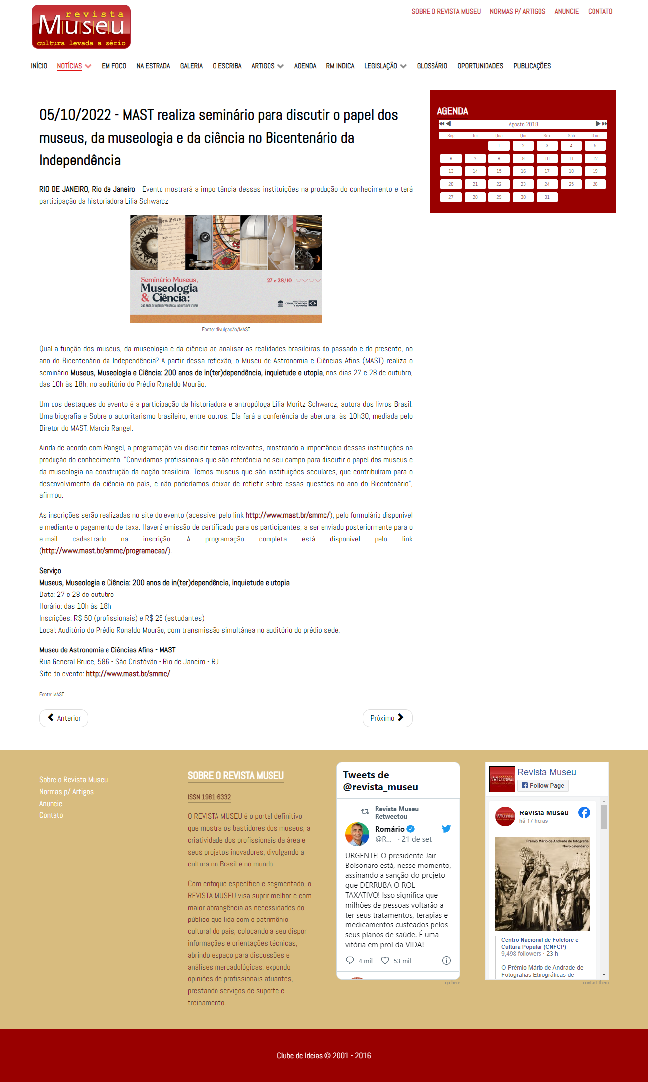 Revista Museu - MAST realiza seminário para discutir o papel dos museus, da museologia e da ciência no Bicentenário da Independência