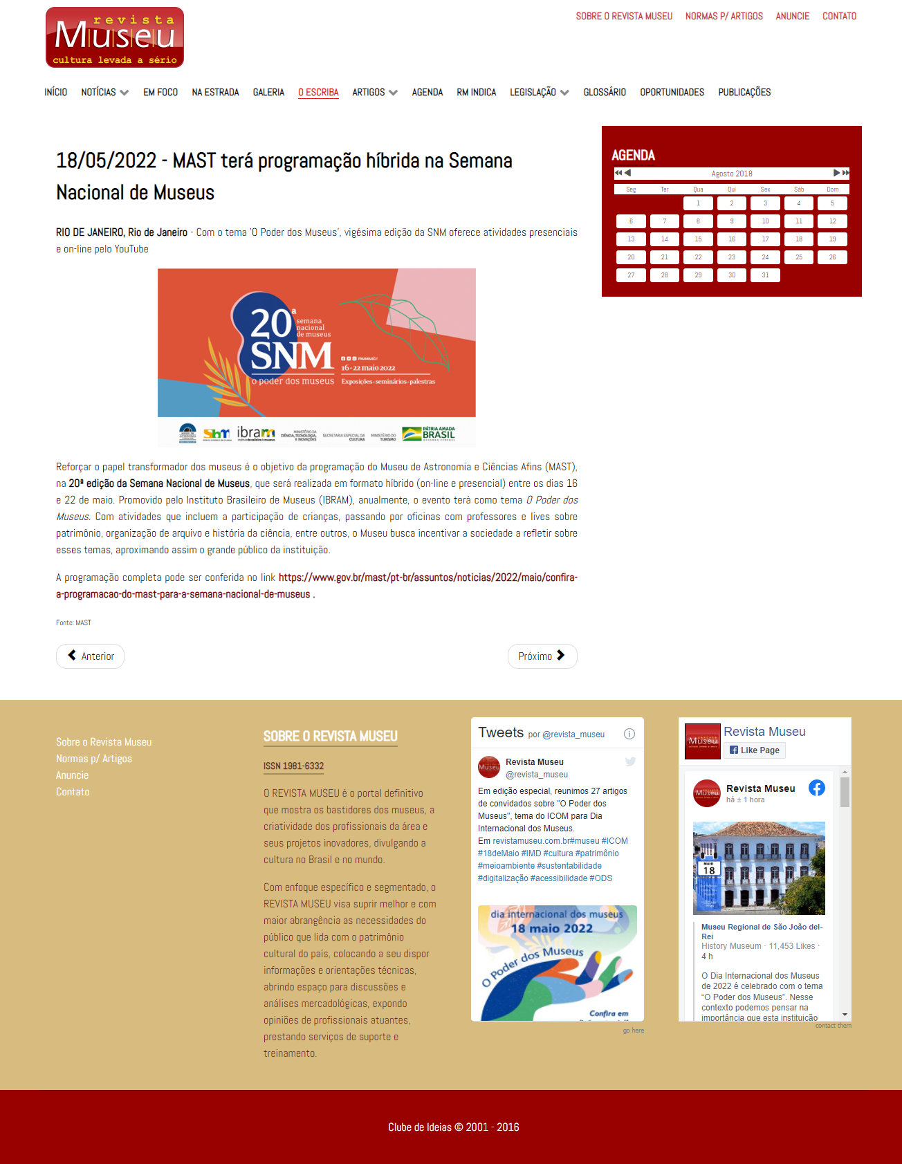 Revista Museu - MAST terá programação híbrida na Semana Nacional de Museus