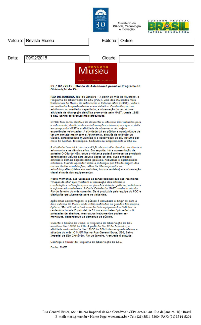 Revista Museu | Museu de Astronomia promove Programa de Observação do Céu