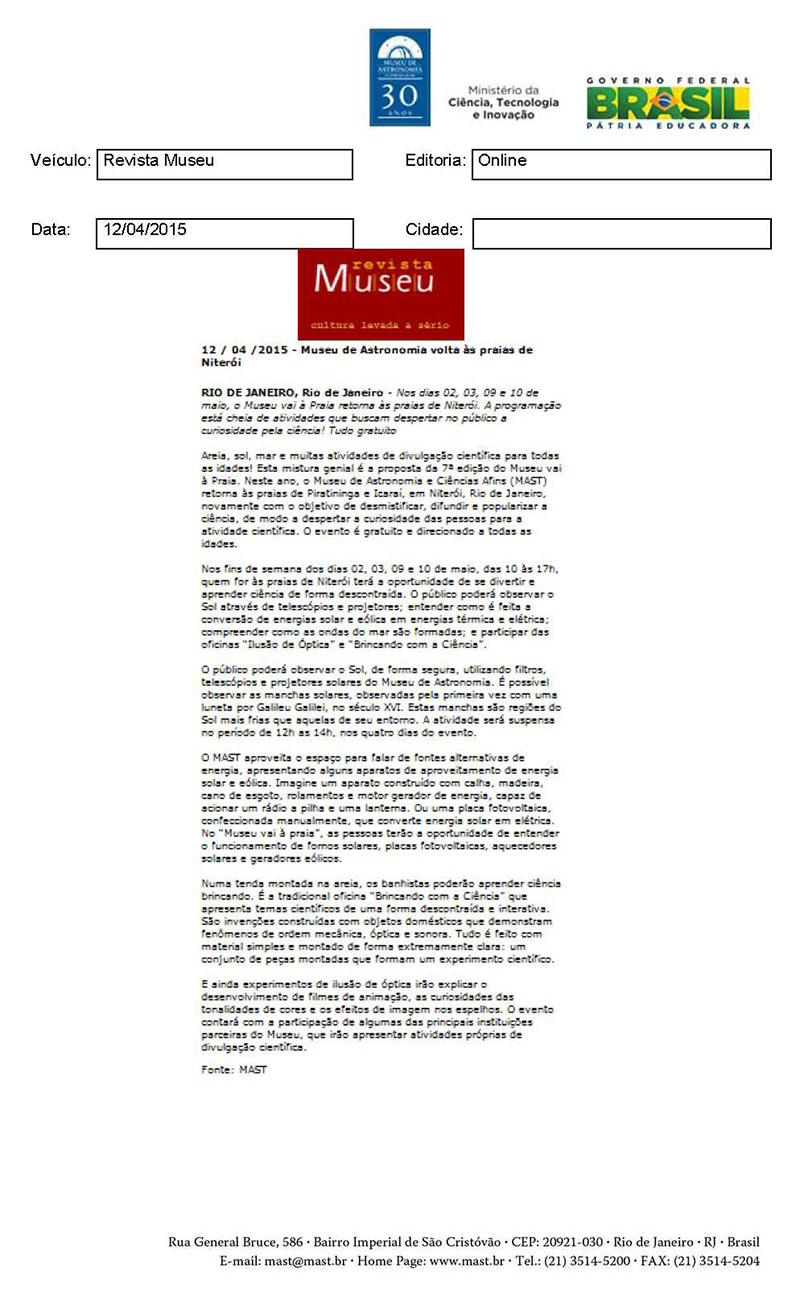 Revista Museu | Museu de Astronomia volta às praias de Niterói
