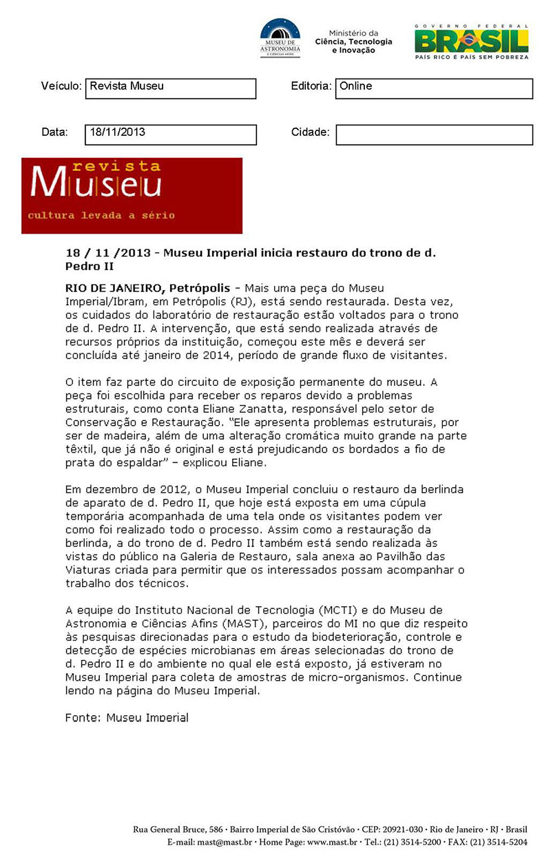 Revista Museu | Museu Imperial inicia restauro do trono de D. Pedro II