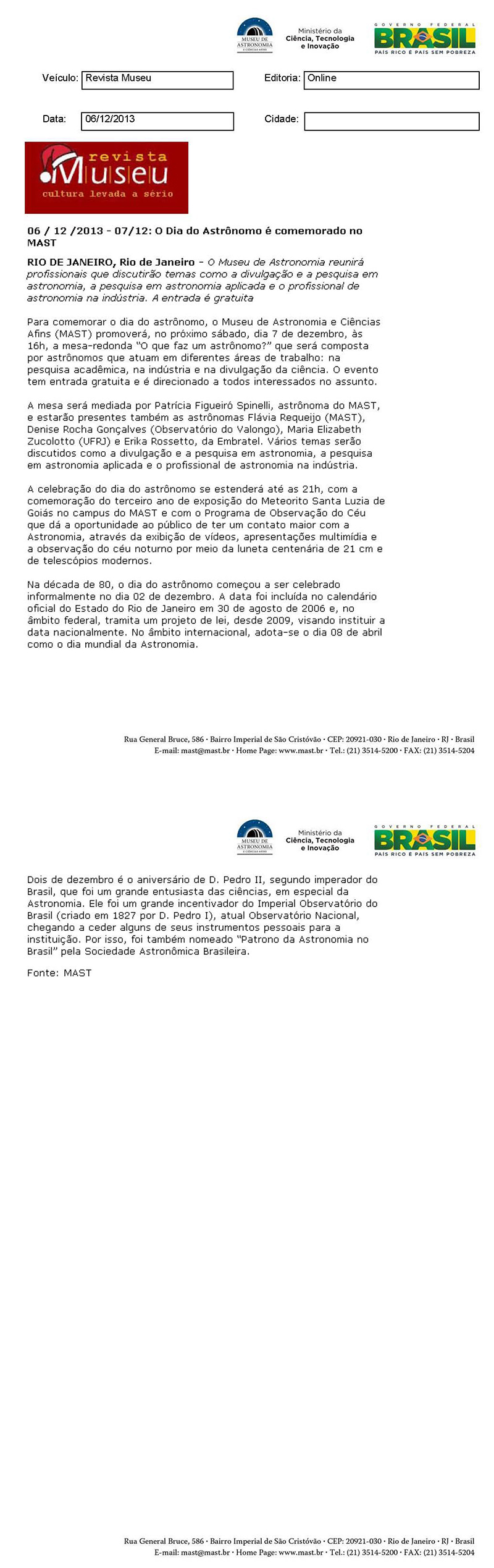 Museu de Astronomia e Ciências Afins - MAST