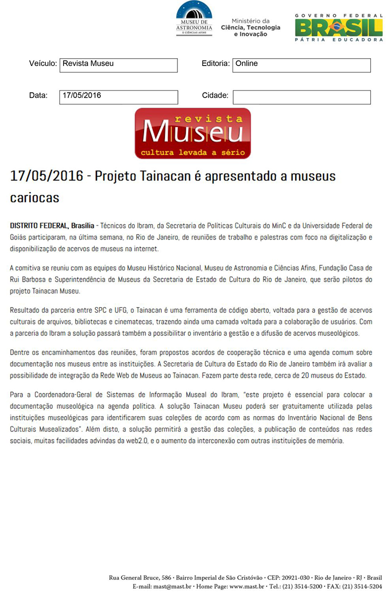 Revista Museu | Projeto Tainacan é apresentado a museus cariocas