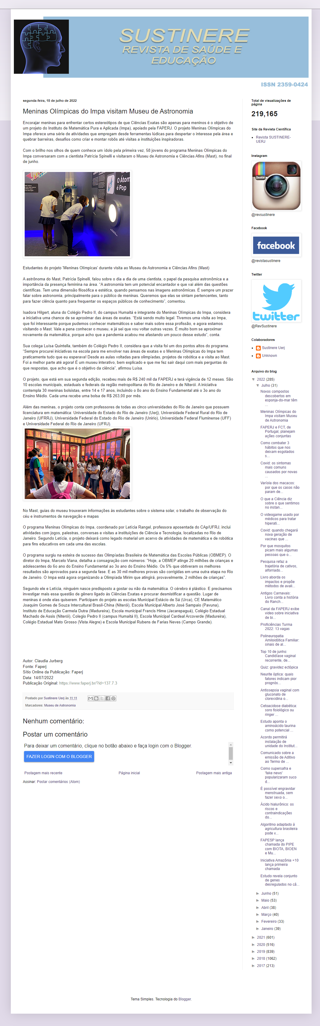 Revista Sustinere / UERJ - Meninas Olímpicas do IMPA visitam Museu de Astronomia