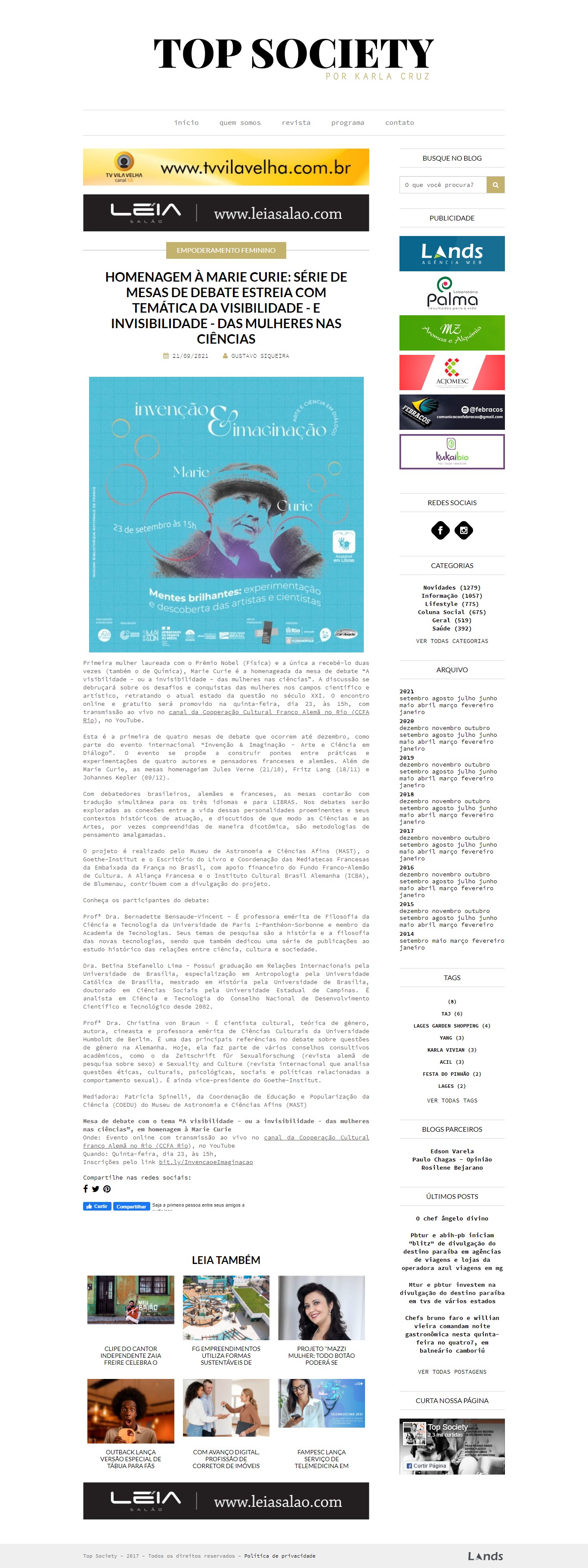 Revista Top Society (Lages-SC) - MAST, Goethe-Institut e Embaixada da França realizam o projeto 'Invenção & Imaginação'