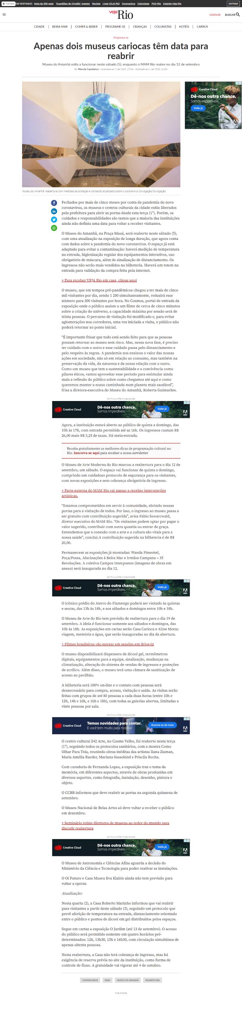 Revista Veja Rio | MAST na reportagem 'Apenas dois museus cariocas têm data para reabrir'