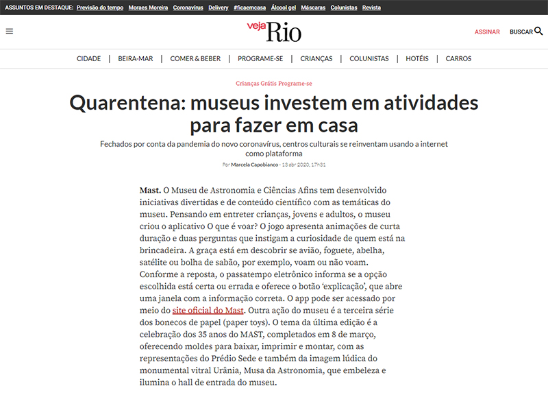 Revista Veja Rio | MAST oferece aplicativo ‘O Que É Voar?’