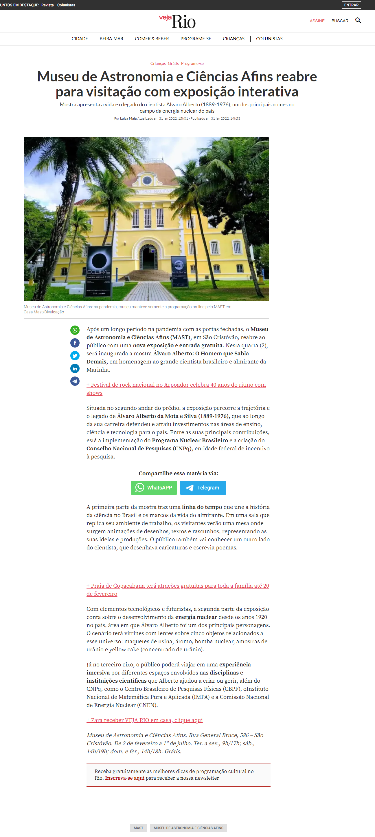 Revista Veja Rio - MAST reabre com exposição sobre Álvaro Alberto