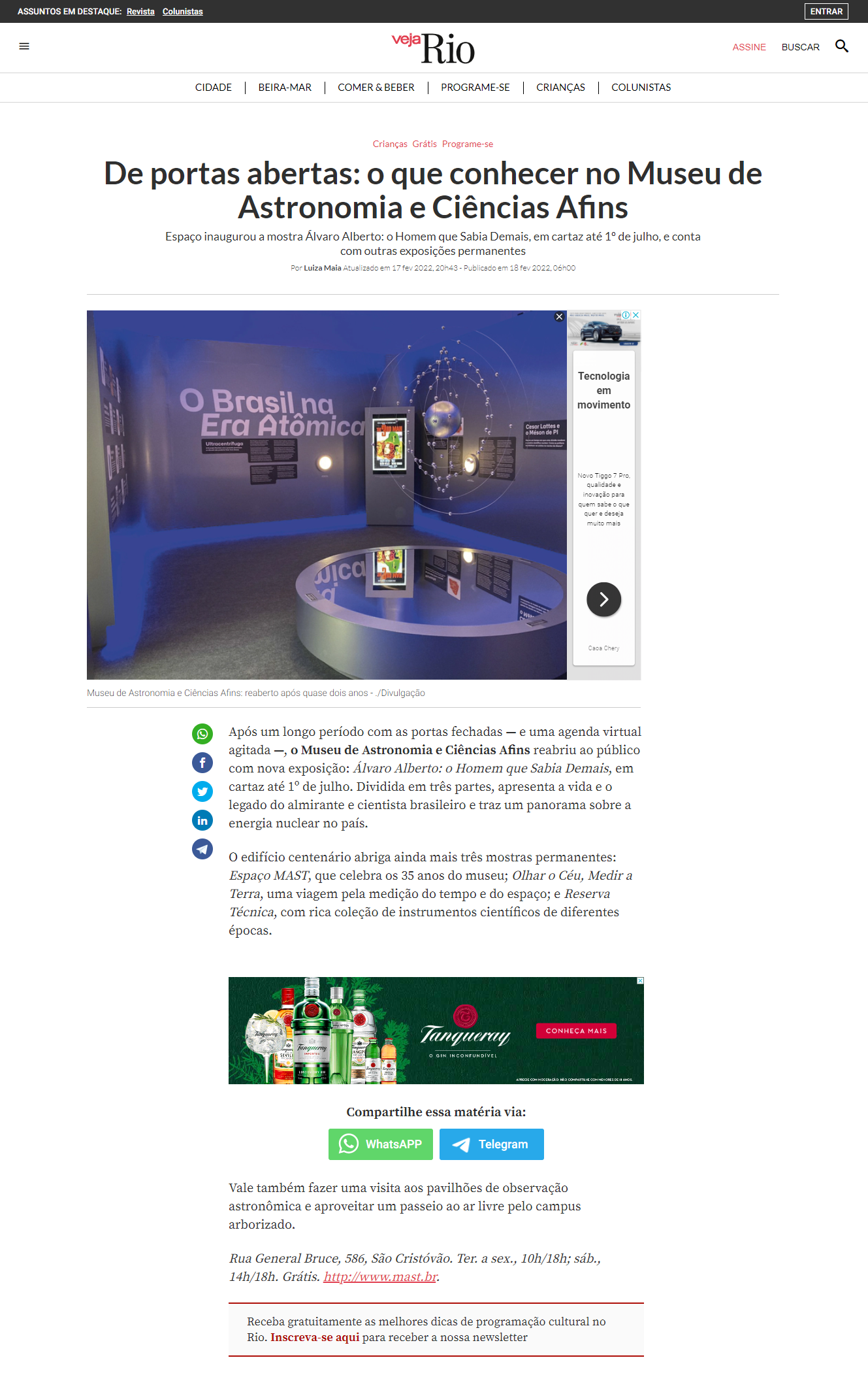 Revista Veja Rio - MAST reabre com exposição sobre Álvaro Alberto