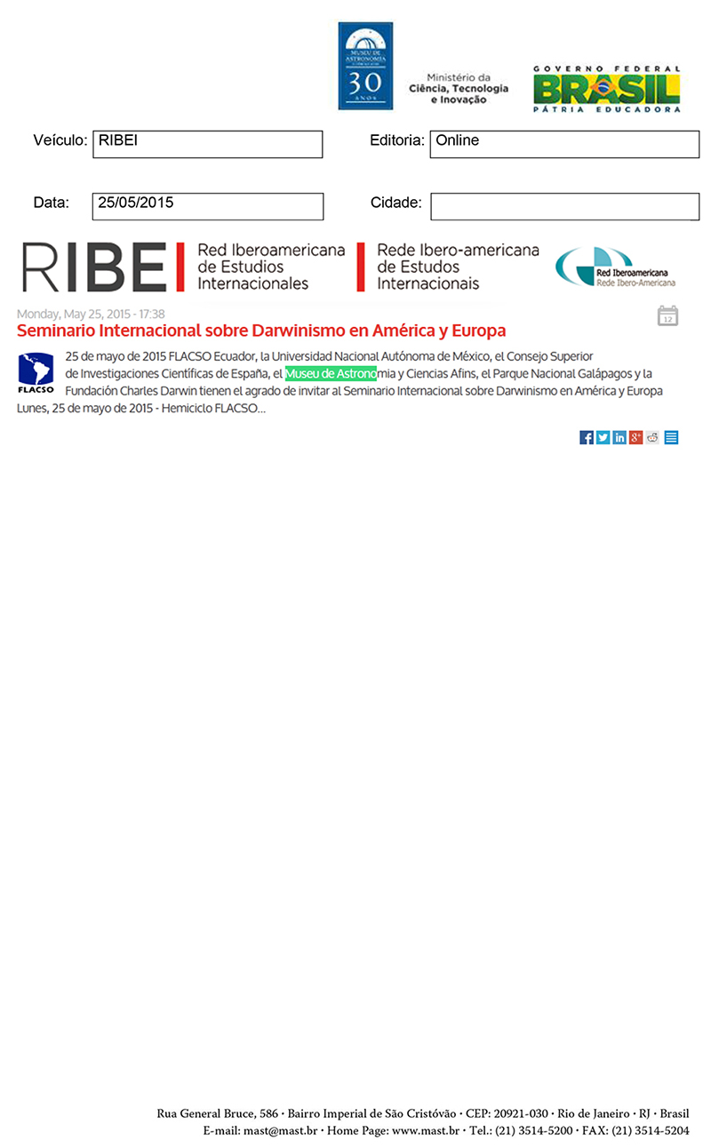 RIBEI | Seminário Internacional sobre Darwinismo en América y Europa