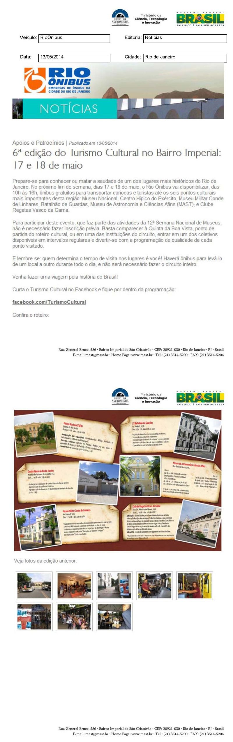 Rio Ônibus | 6ª edição do Turismo Cultural no Bairro Imperial: 17 e 18 de maio