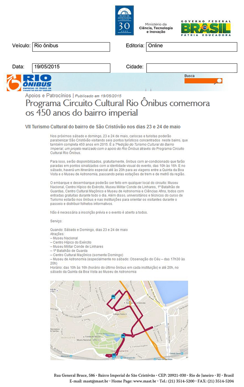 Rio Ônibus | Programa Circuito Carioca Rio ônibus comemora os 450 anos do bairro imperial