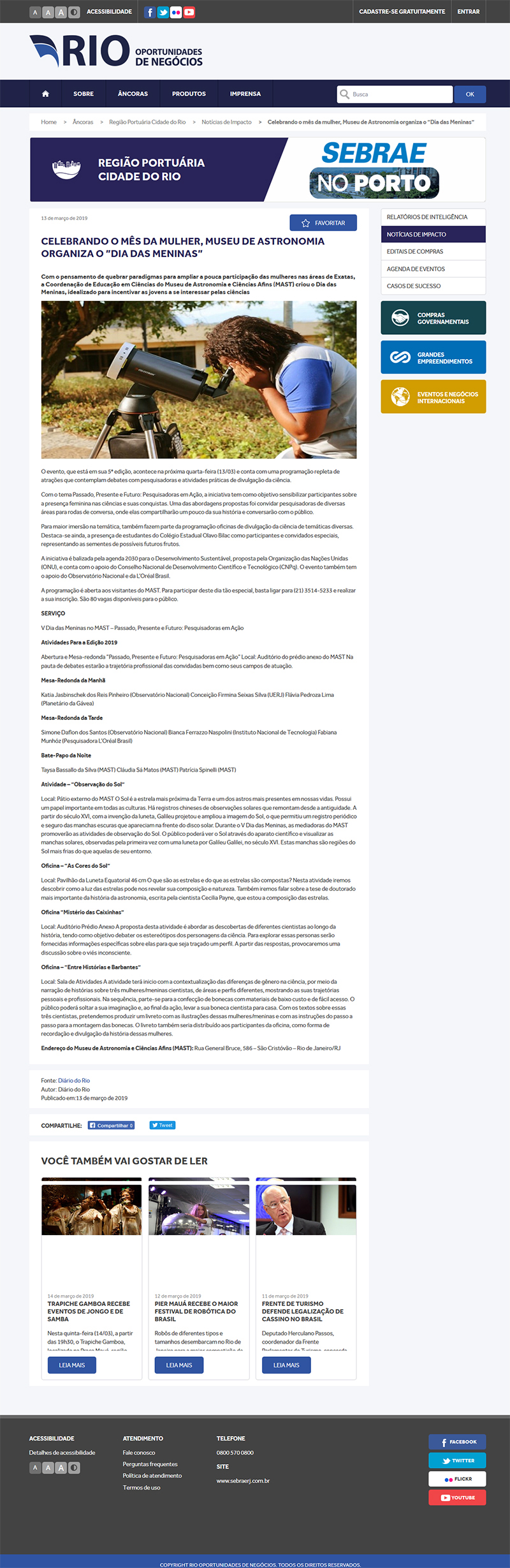Rio Oportunidades de Negócios | Celebrando o mês da mulher, Museu de Astronomia organiza o ”Dia das Meninas”