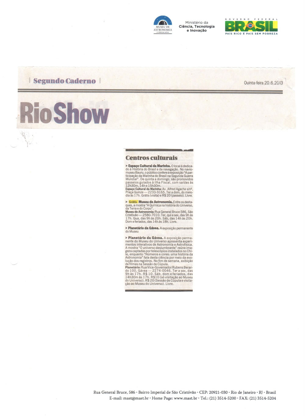 Rio Show | Museus e centros culturais
