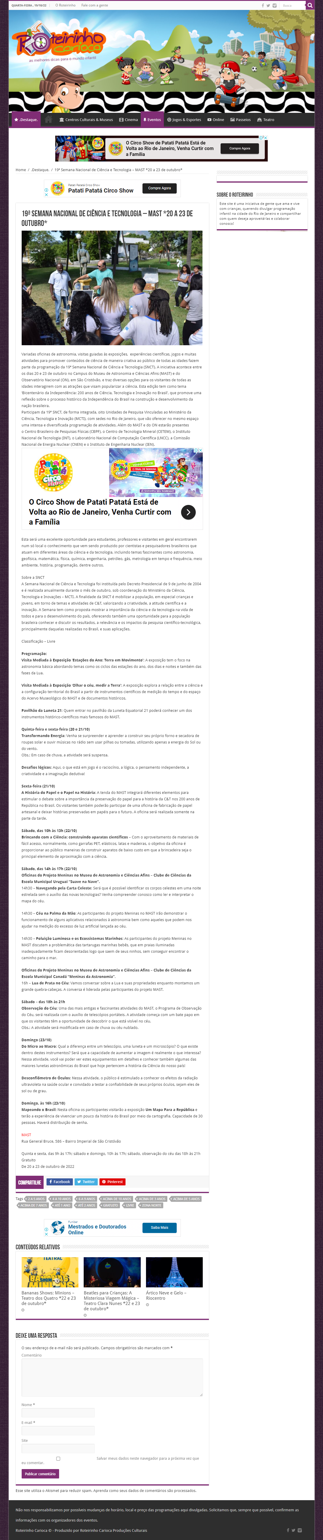 Roteirinho Carioca - Campus do MAST / ON vai oferecer atividades grátis na SNCT 2022 no Rio