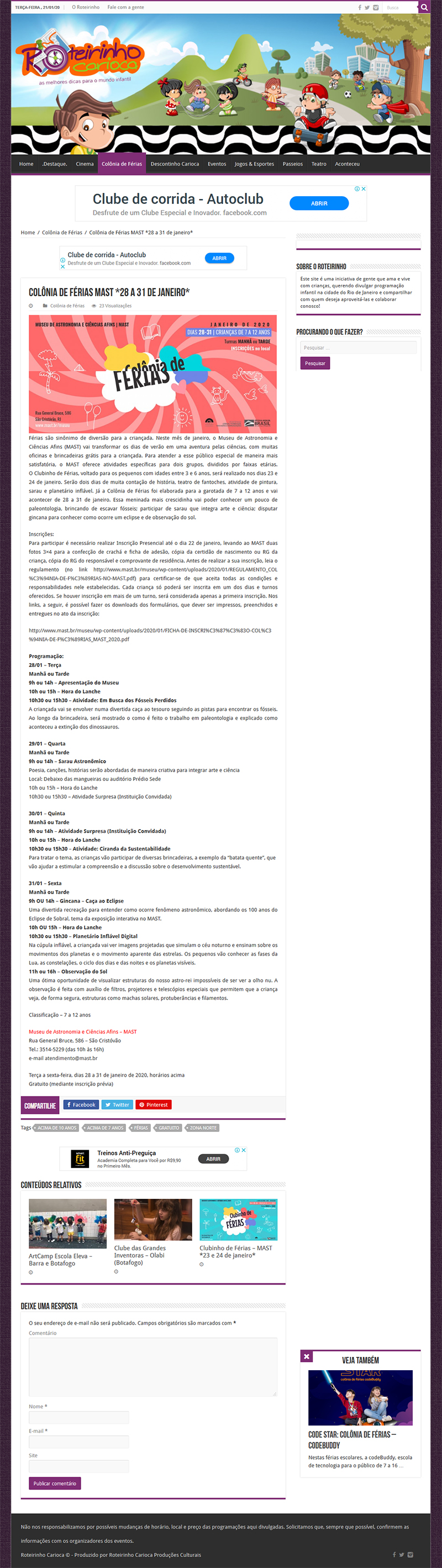 Roteirinho Carioca | Férias de Verão no MAST