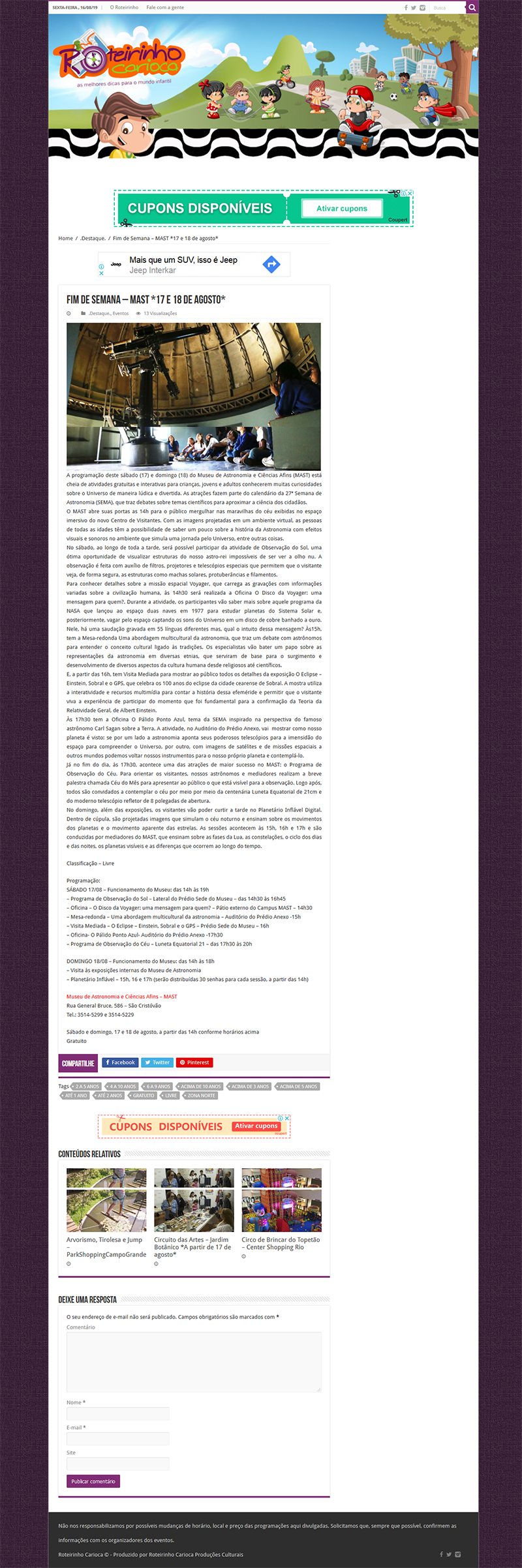 Roteirinho Carioca | Fim de Semana astronômico no MAST - 27ª SEMA