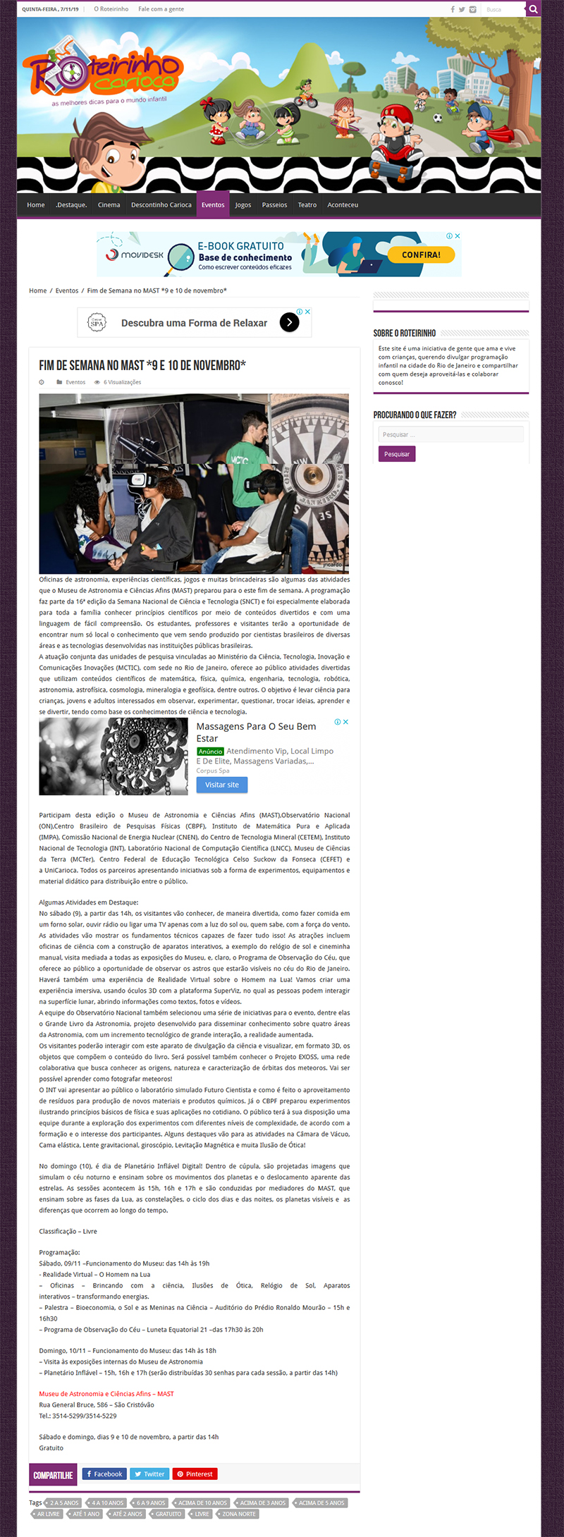 Roteirinho Carioca | Fim de Semana com 16ª SNCT no MAST