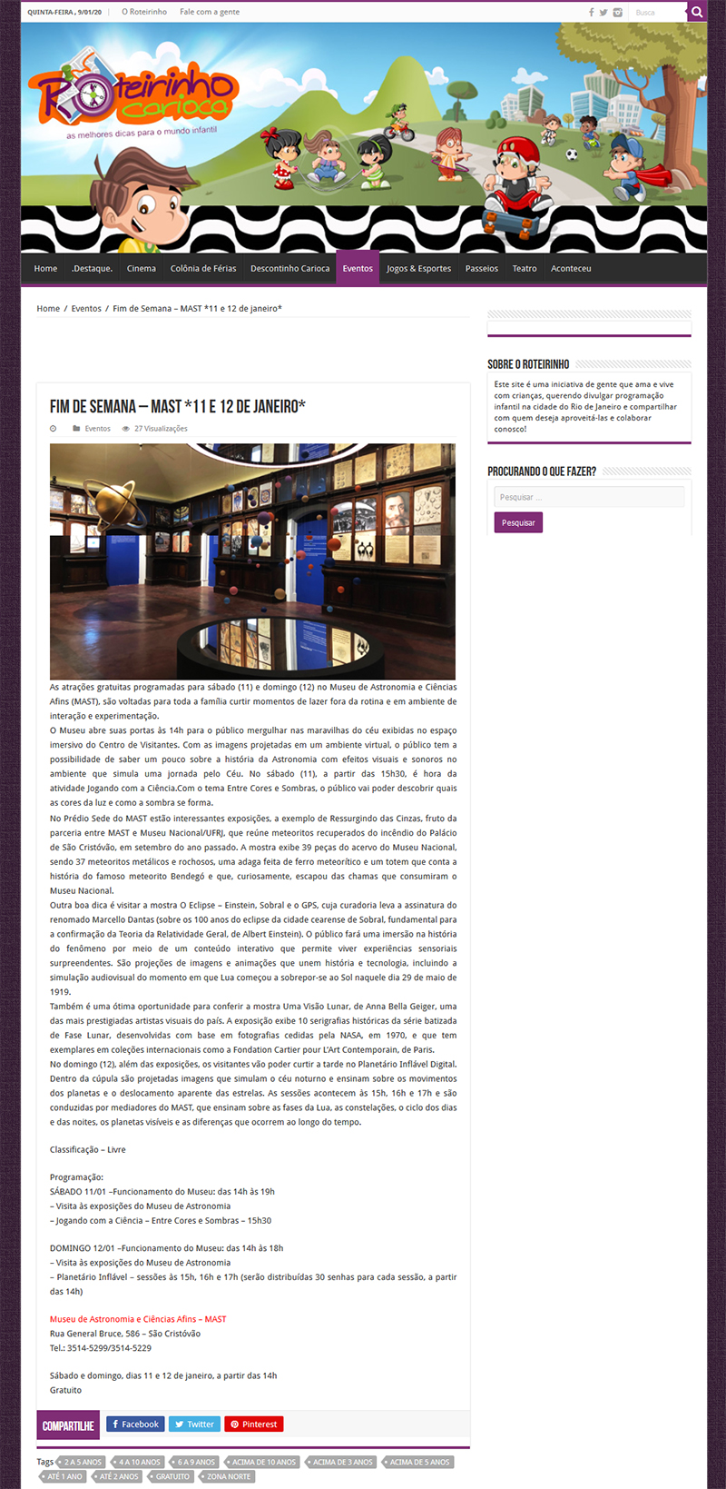 Roteirinho Carioca | Fim de Semana com diversão e ciência no MAST