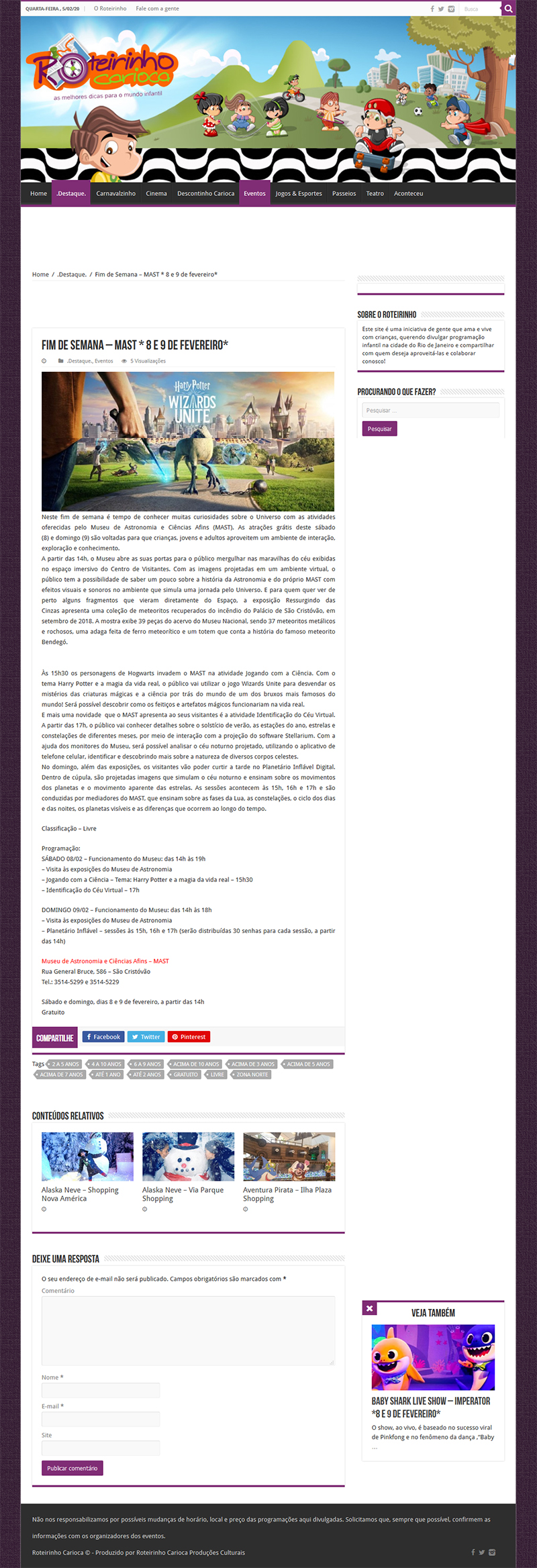 Roteirinho Carioca | Fim de Semana de magia e ciência no MAST