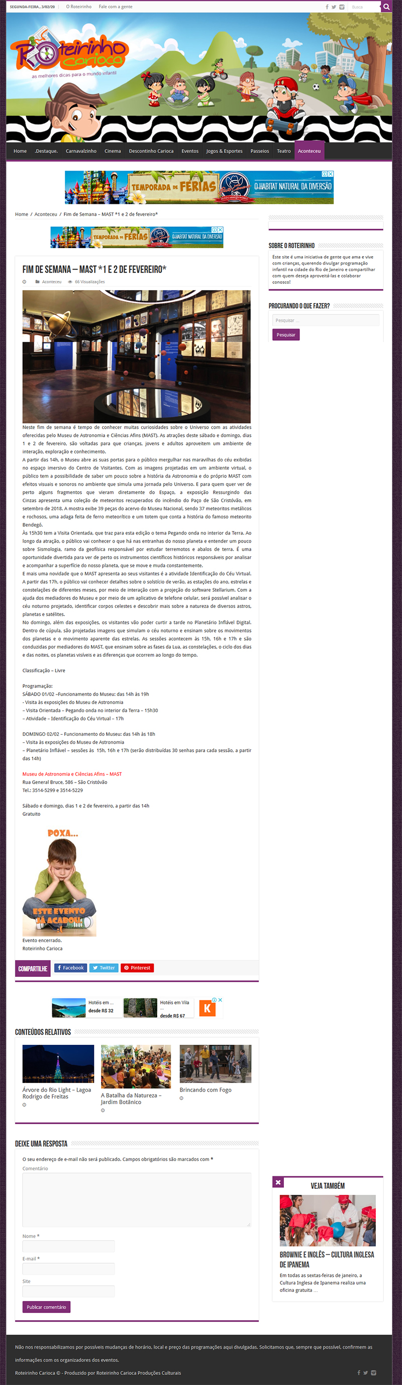 Roteirinho Carioca | Fim de Semana de olhares para a céu no MAST