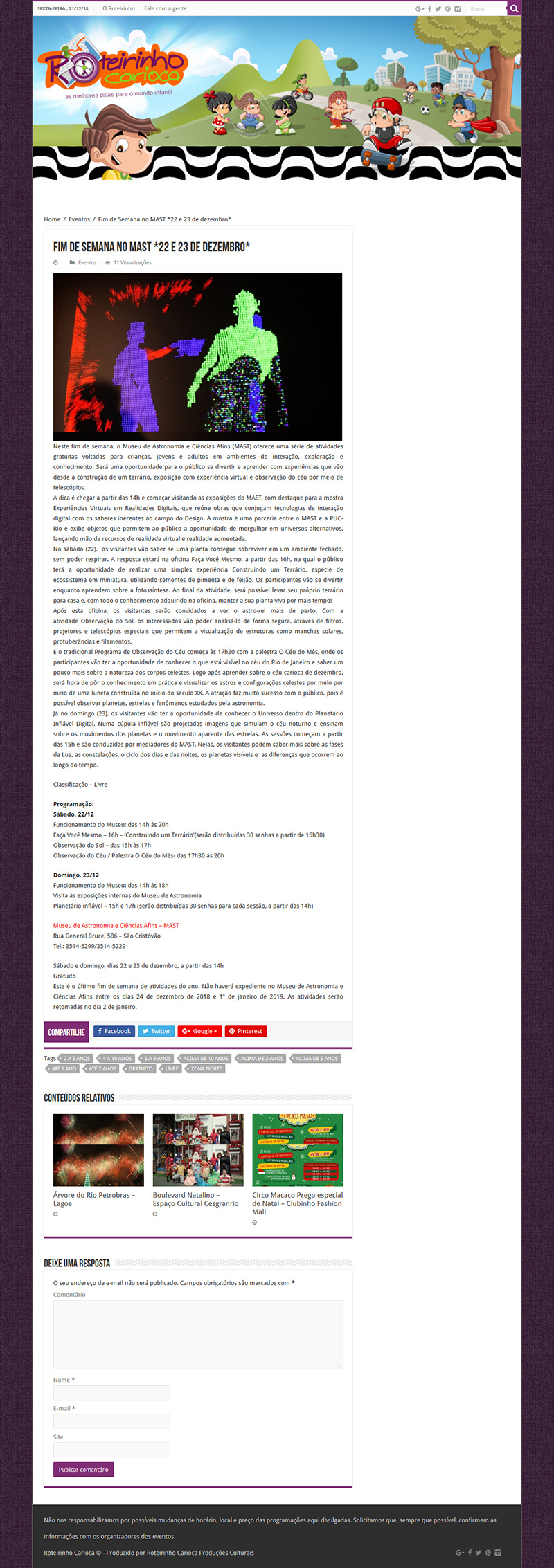 Roteirinho Carioca | Fim de Semana no MAST - 22 e 23 de dezembro