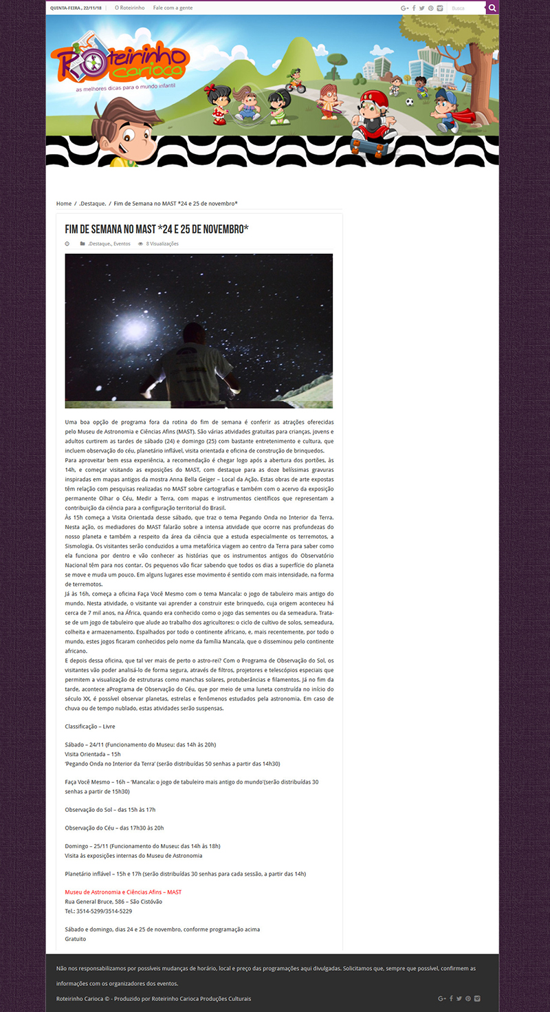 Roteirinho Carioca | Fim de Semana no MAST - 24 e 25 de novembro