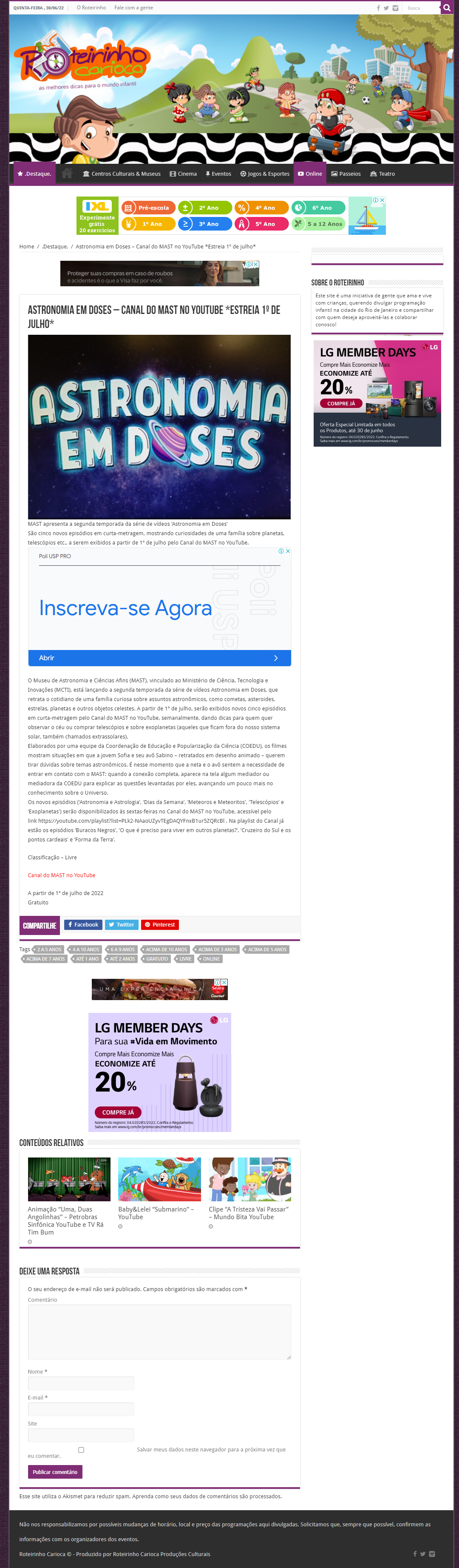 Roteirinho Carioca - MAST apresenta a segunda temporada da série de vídeos 'Astronomia em Doses'